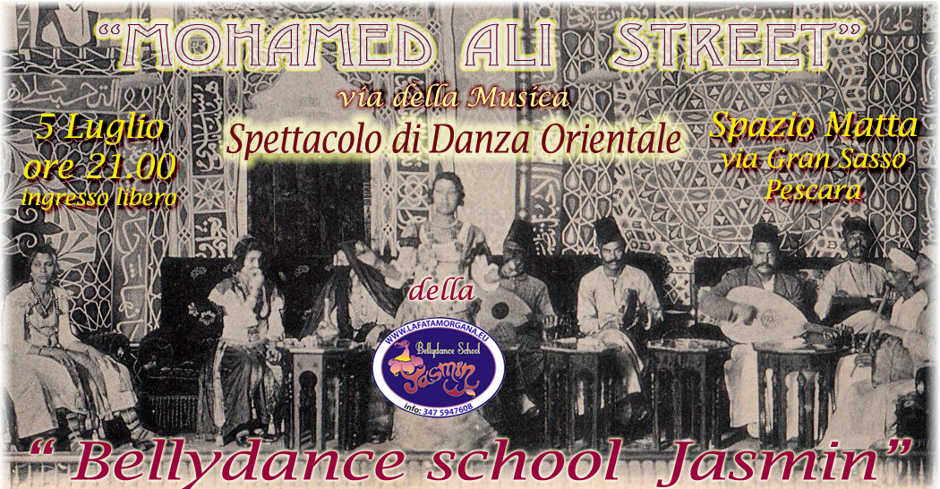 si terrà domenica 5 Luglio lo spettacolo di danza orientale a cura della “Bellydance school jasmin”. Protagoniste dello show saranno le allieve dei corsi principianti,intermedi ed avanzati non ché il corpo insegnanti della scuola. Spettacolo intitolato “Mohamed Ali street” in memoria del celebre quartiere di musicisti e danzatrici del Cairo propone un ricchissimo programma che prevede esibizioni della danza orientale classica,folcloristica,show bellydance e tribal-fusion dance. Ingresso gratuito. lo spettacolo avrà inizio alle ore 21.00 presso “Spazio Matta” in via Gran Sasso a Pescara. per informazioni: 3475947608