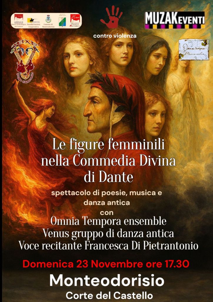 L’ Amministrazione Comunale di Monteodorisio in collaborazione con l’Agenzia artistica Muzak Eventi presentano: “Le figure femminili nella Divina Commedia di Dante” con Omnia Tempora l’ensemble di musica antica e il gruppo di danza antica Venus